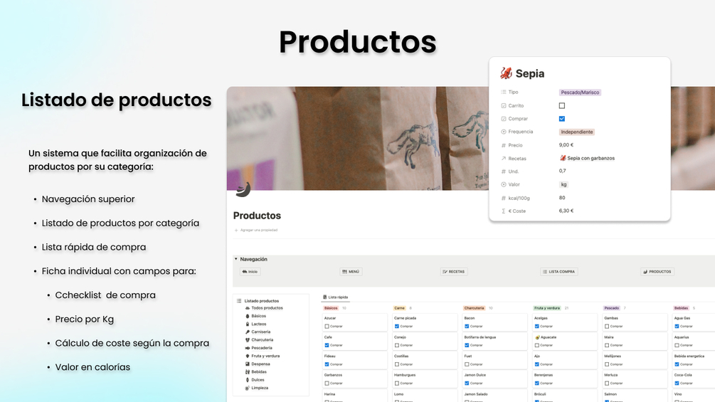 Planificador de comidas: recetas, productos, lista de compra, menús