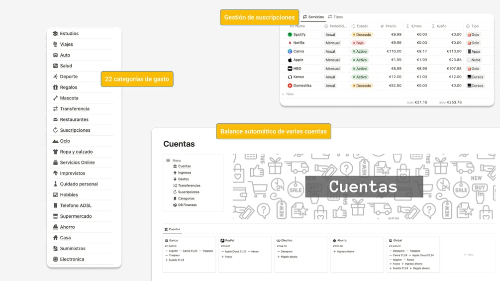 • Control sobre suscripciones: análisis de gastos recurrentes organizados por categorías